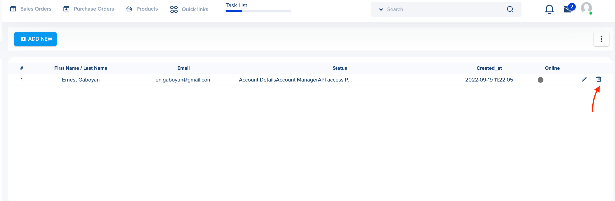 You need to go to CRM -> Users. Here you see all users and the delete icon on the right of each user.